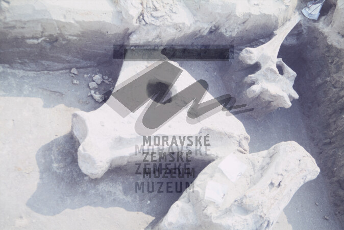 Mamutí lopatka se záměrně udělaným otvorem v gravettienské kulturní vrstvě.