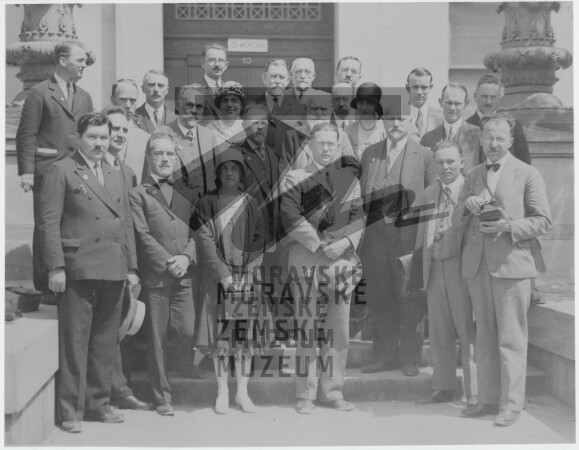 Účastníci přírodovědného kongresu v Bostonu, 30. léta 20 století. Ve spodní řadě uprostřed Jaroslav Kříženecký (1896-1964) , nad ním Ivan Petrovič Pavlov (1849-1936), po jejich levici Bohumil Němec (1873-1966).