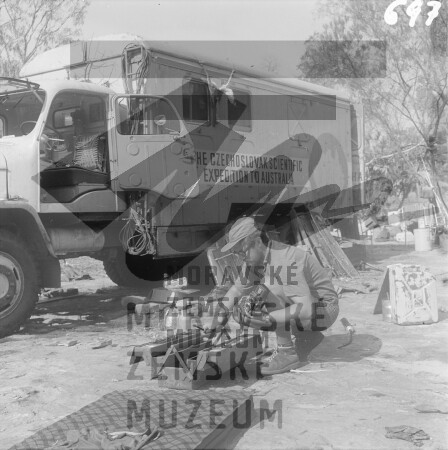 Jiří Vrožina při balení získaného materiálu před odjezdem; Arnham Land.